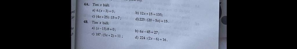 $\begin{array}{l} & (4x + 25) : 15 = 7