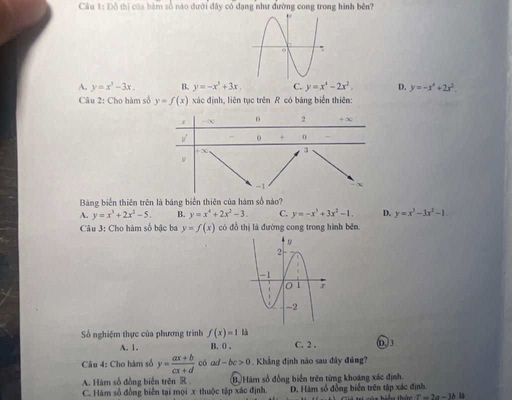 - Dựa vào đồ thị, nhận thấy đồ thị hàm số trên là hàm bậc 3.