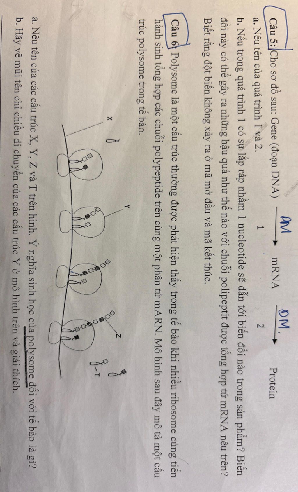 `Y:` Ribosome. → Nơi xảy ra quá trình tổng hợp Protein.