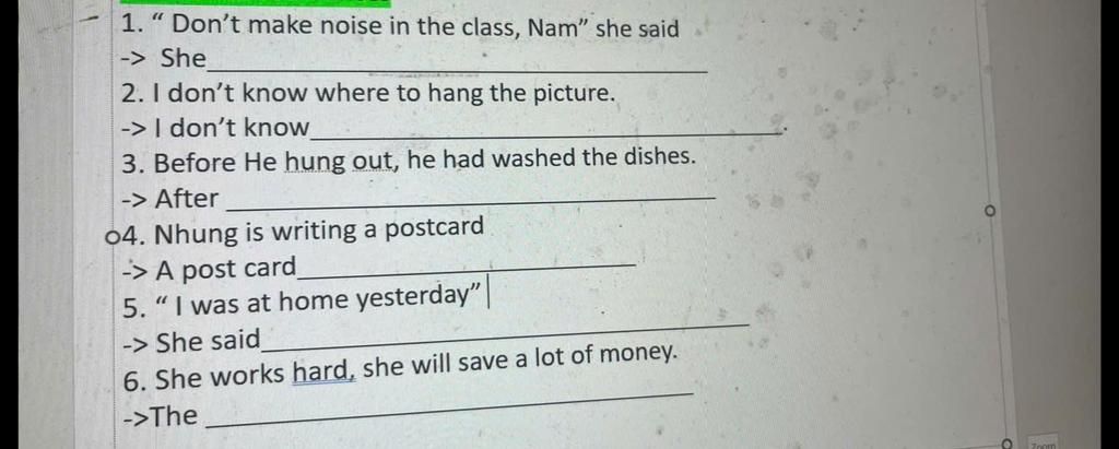 `->` S + said/told O + (that) + S + V(lùi thì)