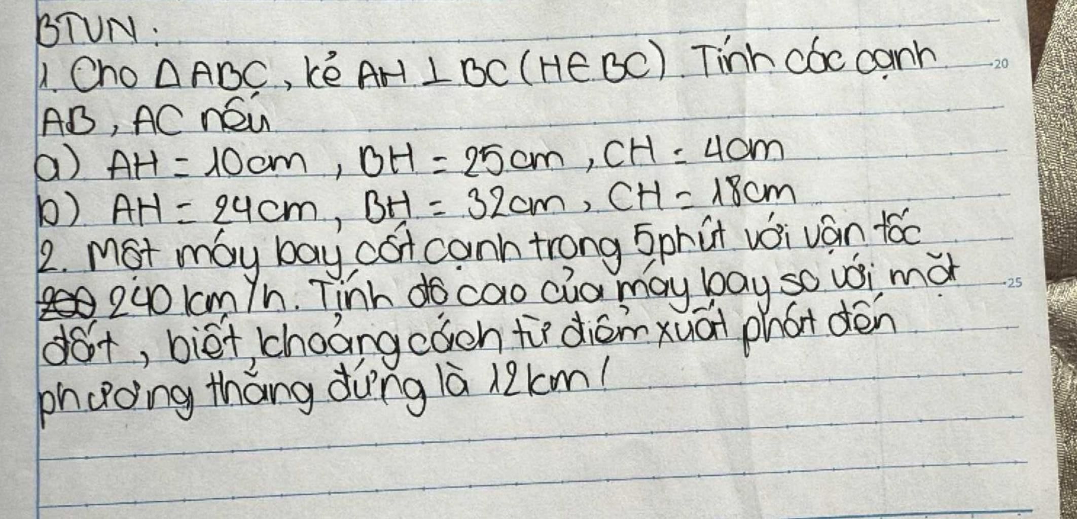 h Cho DABC, kẻ AH LỌC CHE BC) Tính các cạnh