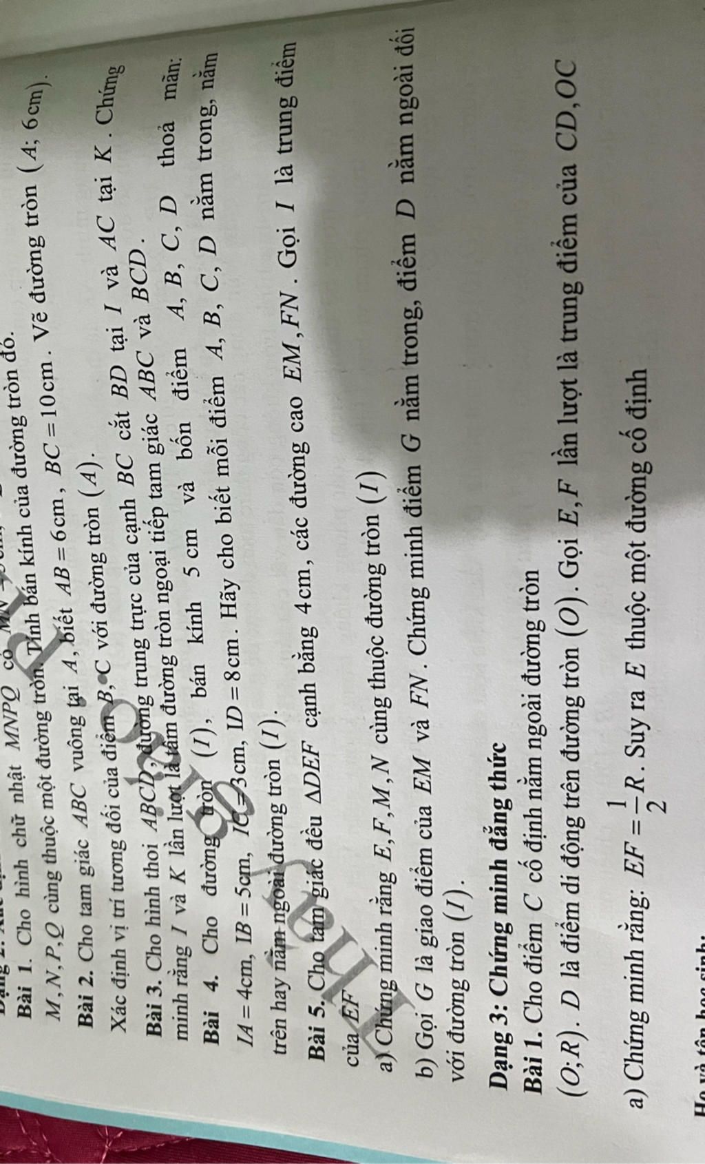 Bài 2. Cho tam giác ABC vuông tại A, biết AB=6cm, BC=10cm. Vẽ đường tròn (A; 6cm).