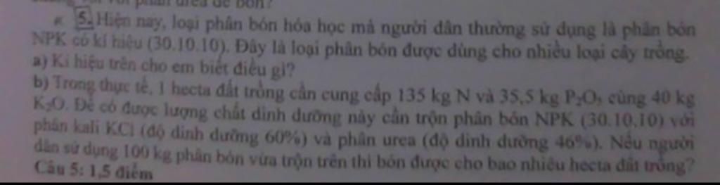 `N, P_2O_5, K_2O` lần lượt là `30\%,10\%,10\%`