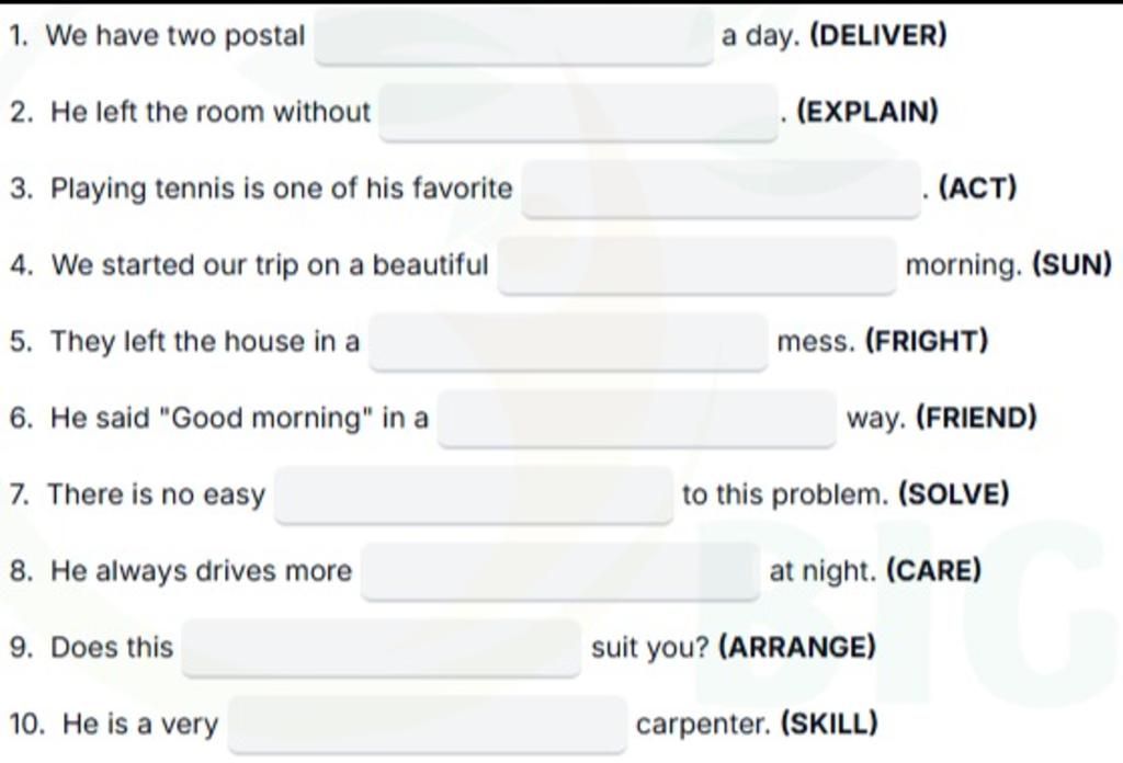 `-` deliveries (n) : sự chuyển phát