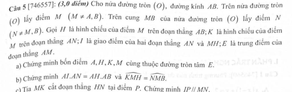 $\to A, H, K, M\in$ đường tròn đường kính $AM$