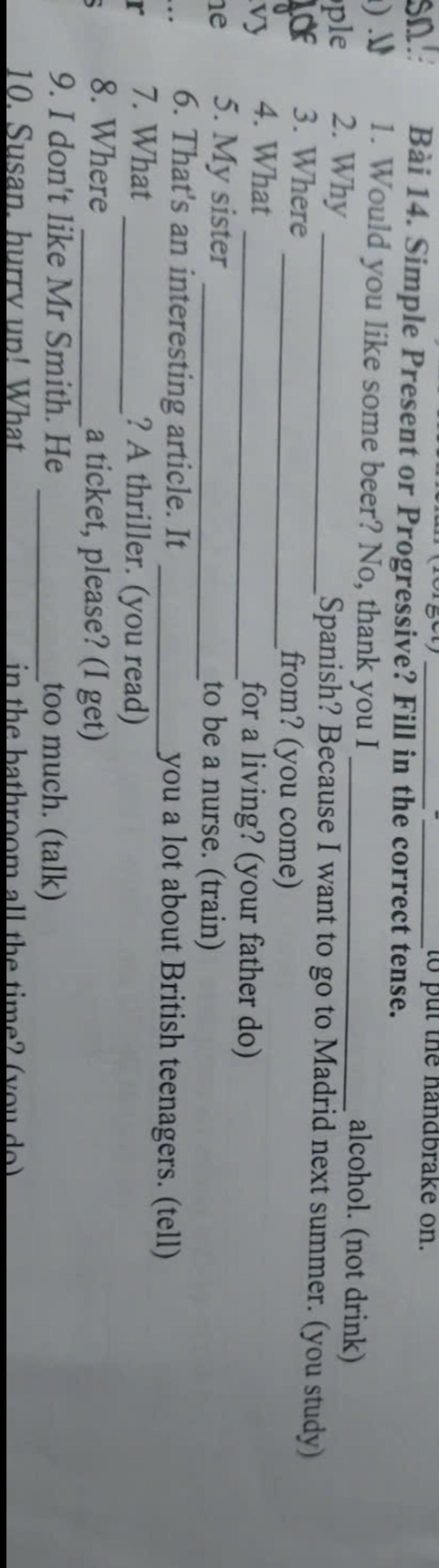 - N(số ít) : he/she/it/... + does/doesn't/V(s/es)