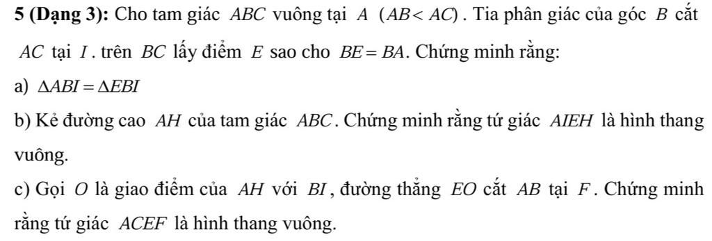 a.Xét $\Delta ABI,\Delta EBI$ có: