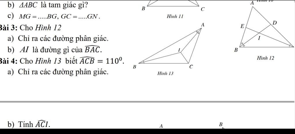 `=>` Các đường phân giác là: `BD, CE, AI`