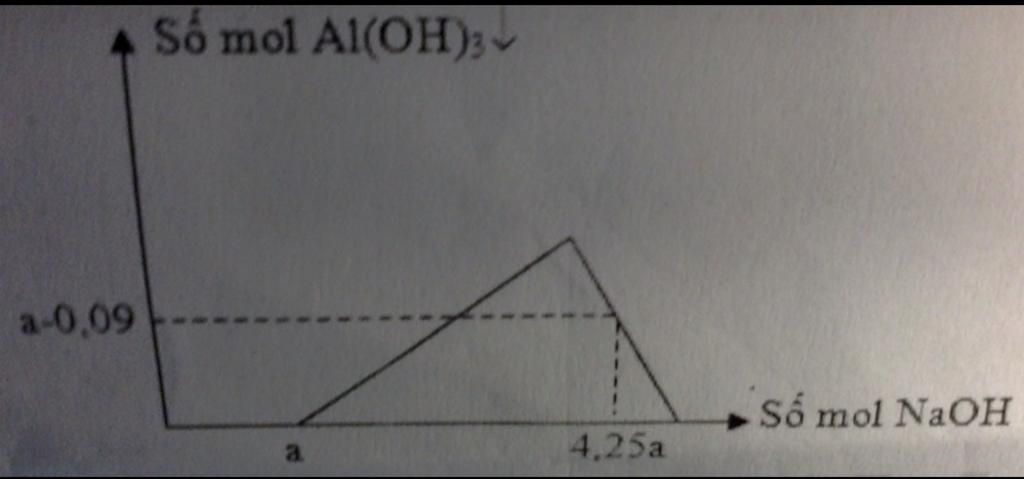 Hỗn hợp X gồm Cu và Al2O3 có tỷ lệ mol tương ứng là 4 : 3. Cho m gam hỗn hợp X tác dụng với dung dịch HCl dư thu được chất rắn Y và dung dịch Z chứa 2 chất tan có cùng nồng độ mol. Rót từ từ dung dịch NaOH vào dung dịch Z ta có đồ thị sau . Tìm a tính % khối lượng các chất trong hỗn hợp X