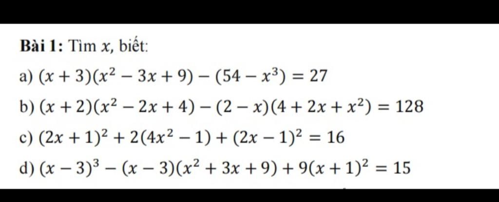`a) (x+3). (x^2 - 3x +9) - (54 - x^3) = 27`