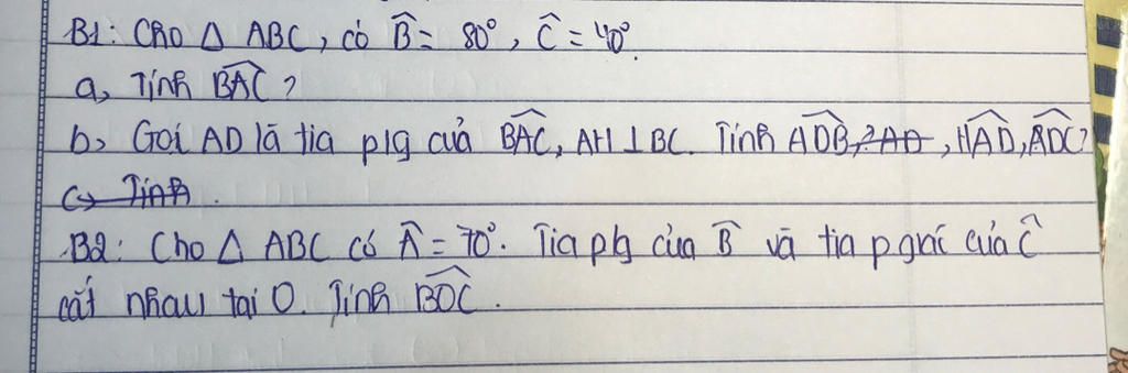 `a)` Trong `Δ ABC` có: