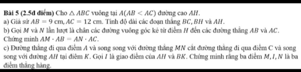 $\Delta AHC$ vuông tại $H, HN\perp AC$