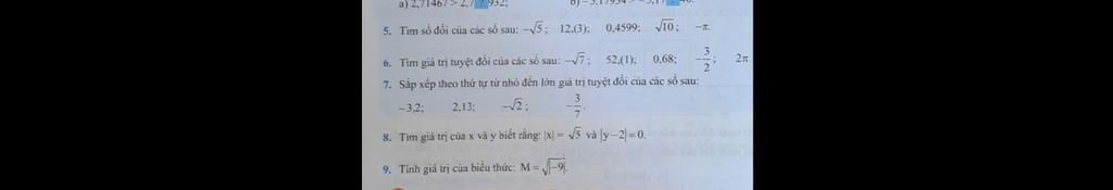 7. Sắp xếp theo thứ tự từ nhỏ đến lớn giá trị tuyệt đối của các số sau: