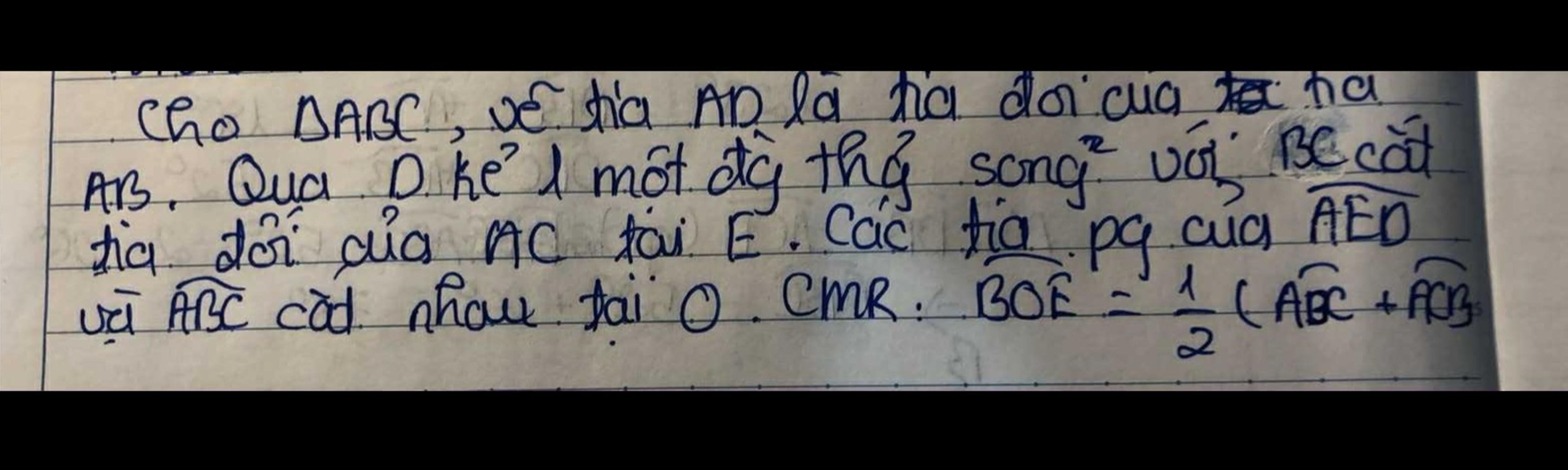 $=\dfrac12\widehat{ABC}+\dfrac12\widehat{ACB}$ vì $DE//CB$