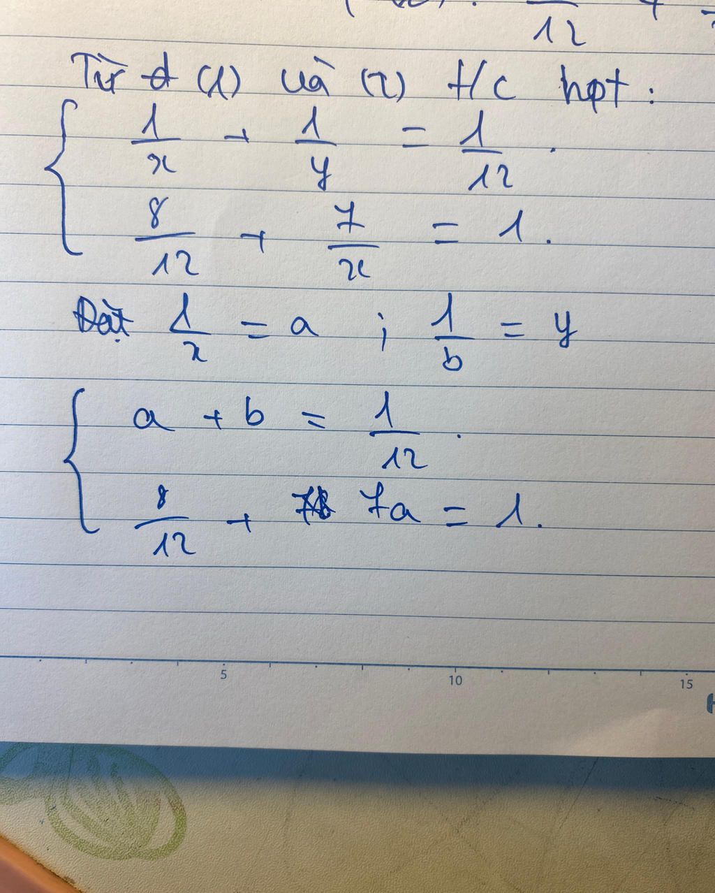 hệ pt `<=> {( a + b = 1/12 ),( 3/4 + 7a = 1 ):}`
