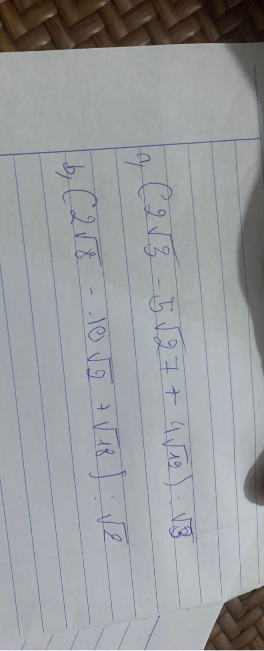 `b, (2\sqrt(8) -10\sqrt(2)+\sqrt(18)) : \sqrt(2)`