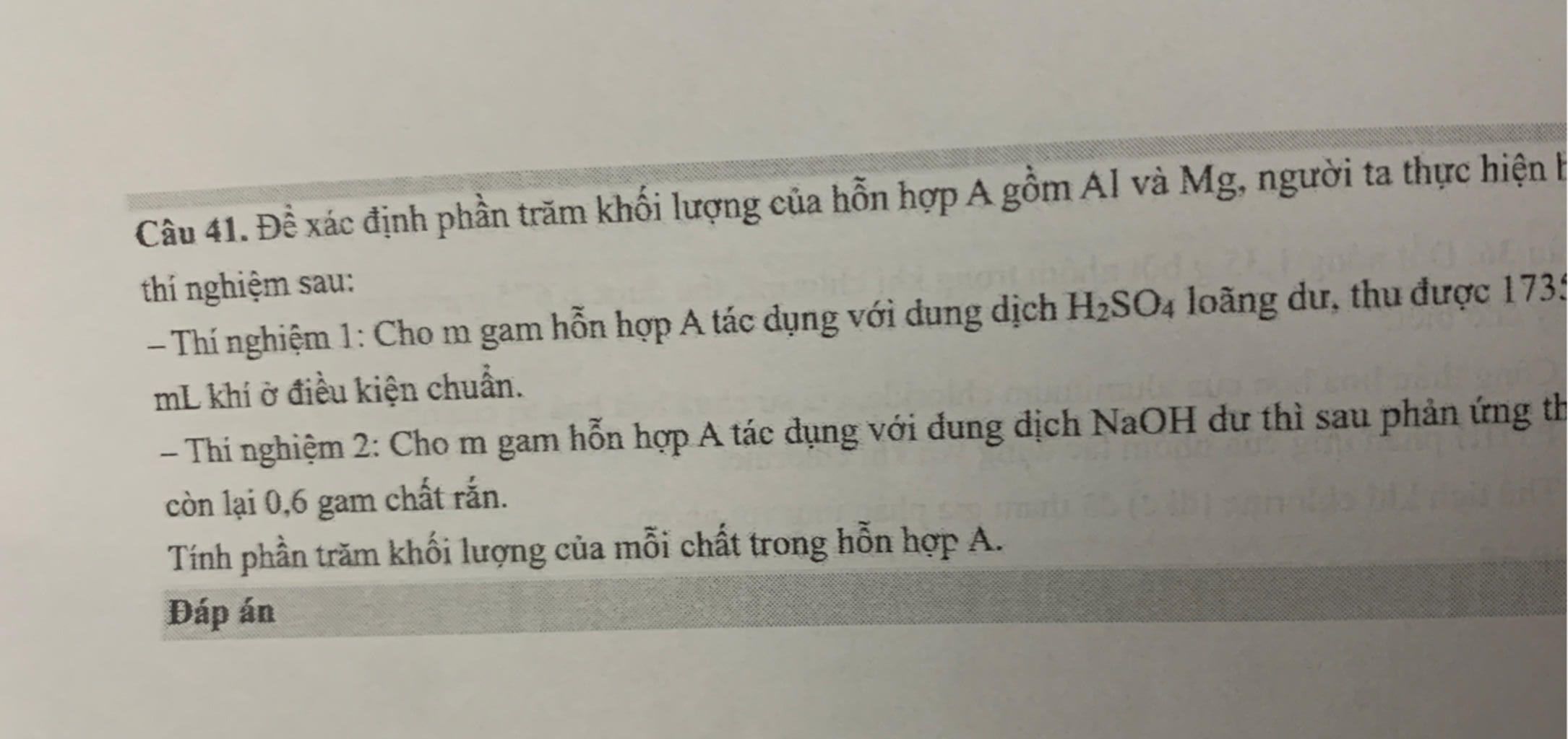 Theo PT: `n_{H_2} = 3/2 n_{Al} + n_{Mg}`