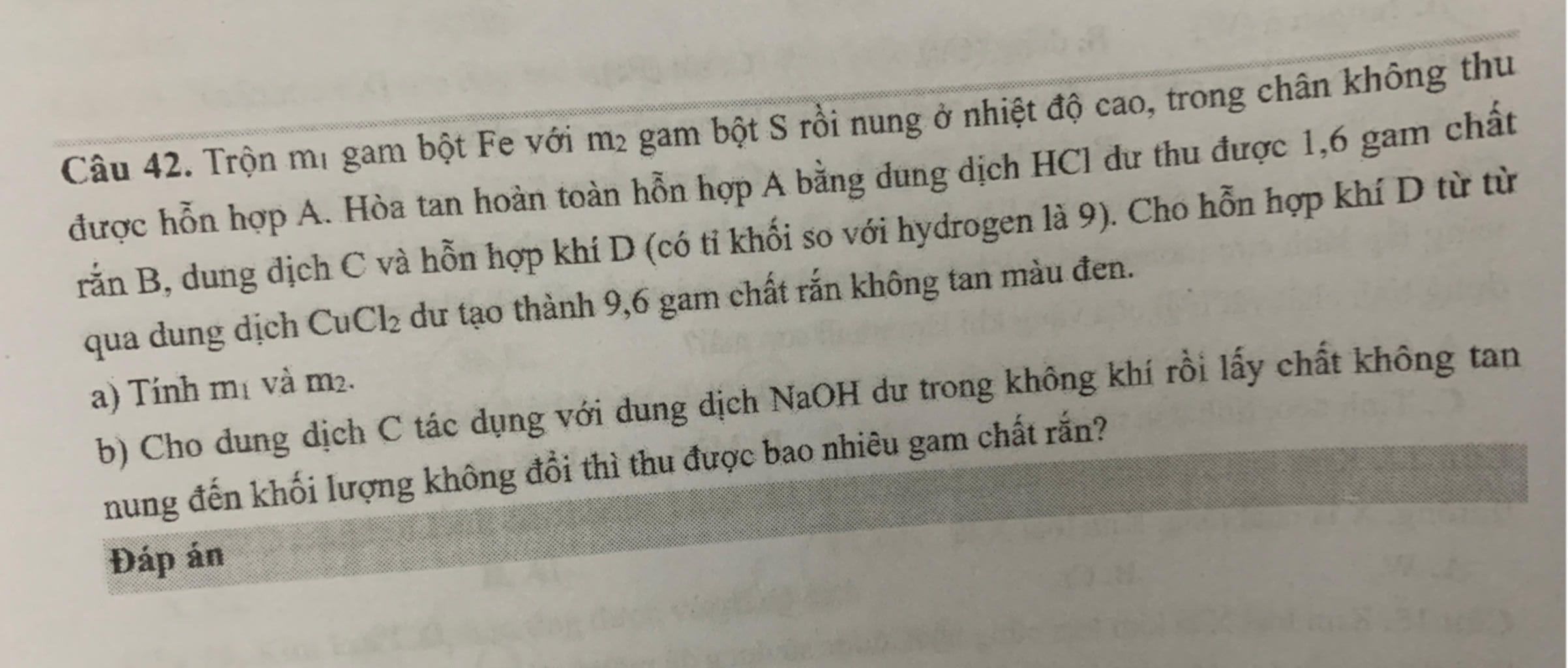 Theo PT: `n_{FeCl_2} = n_{Fe} + n_{FeS} = 0,2 (mol)`