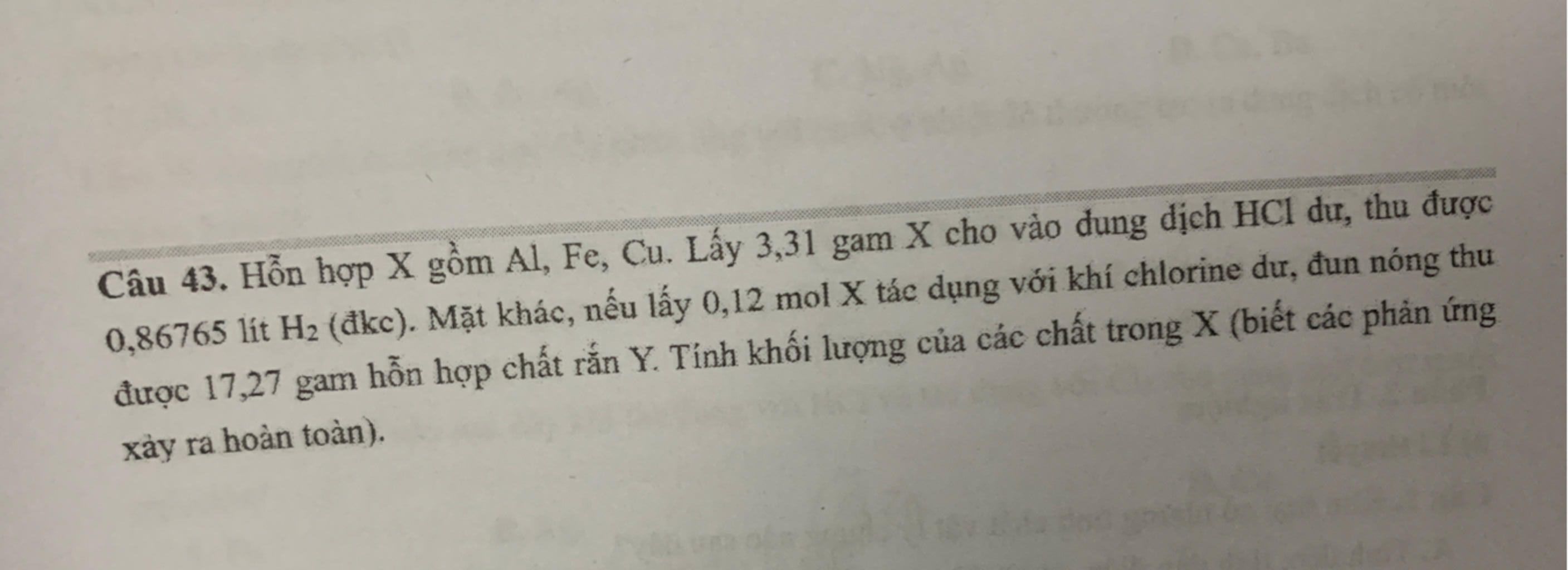 Hh Y gồm: `AlCl_3:kx\ (mol)`, `FeCl_3:ky\ (mol)`, `CuCl_2:kz\ (mol)`