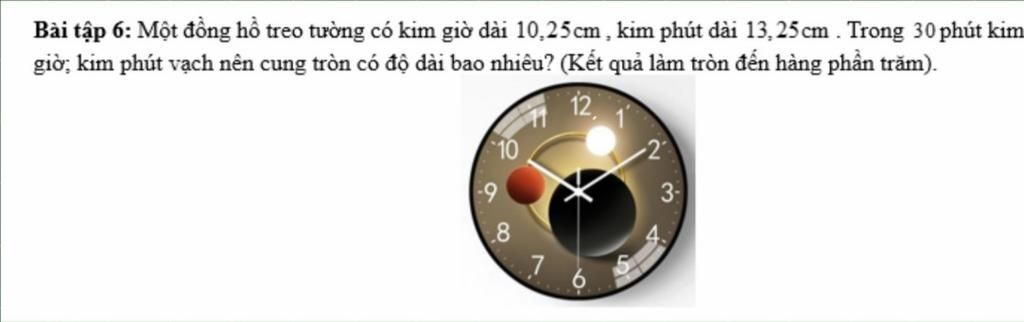 Độ dài cung tròn mà kim giờ vạch ra là ` : `