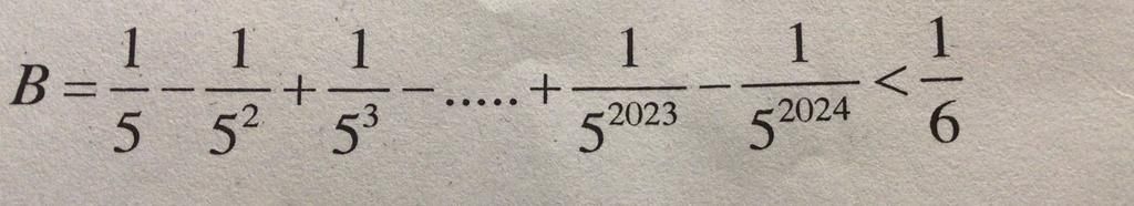 `B=1/5-1/(5^2)+1/(5^3)-...+1/(5^2023)-1/(5^2024)`