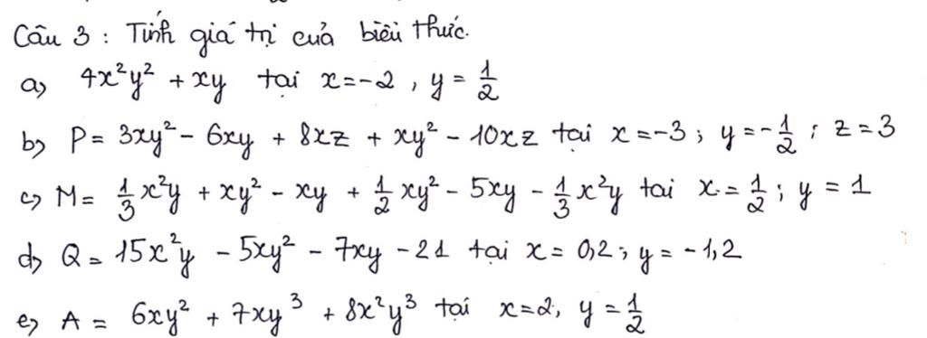 Vậy biểu thức có giá trị bằng `3` khi `x=-2,y=1/2`