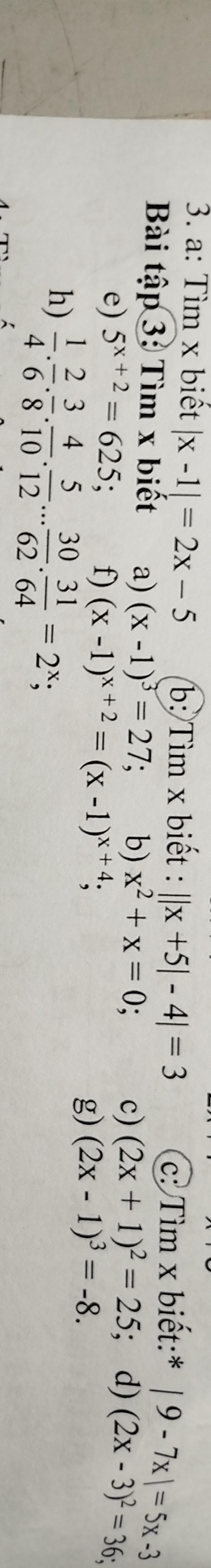 3. a: Tìm x biết |x -1| = 2x − 5 b: Tìm x biết : ||x +5| - 4| = 3