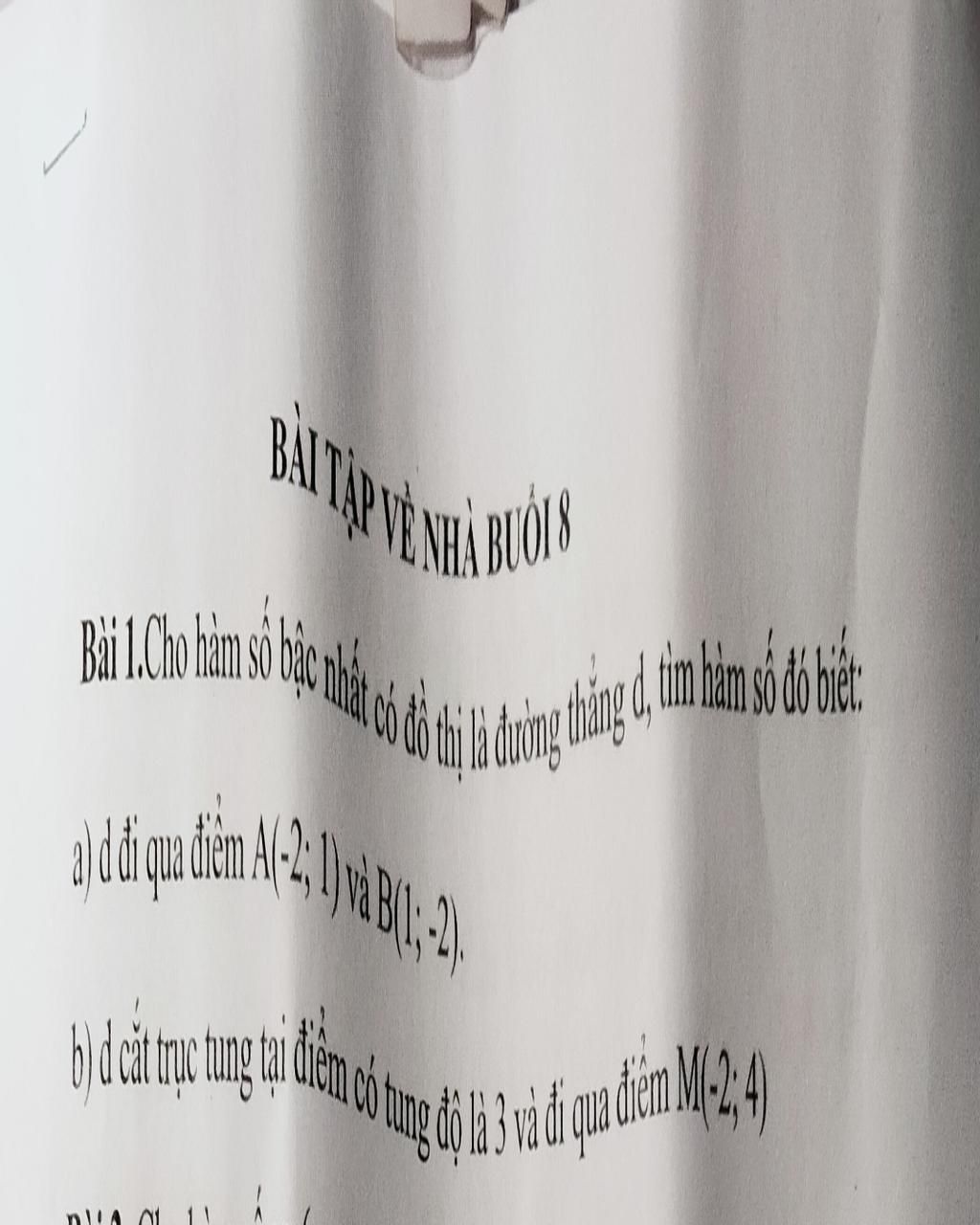 Ta có: `d` đi qua `B(1;-2)` nên thay `x=1;y=-2=>a+b=-2 (2)`