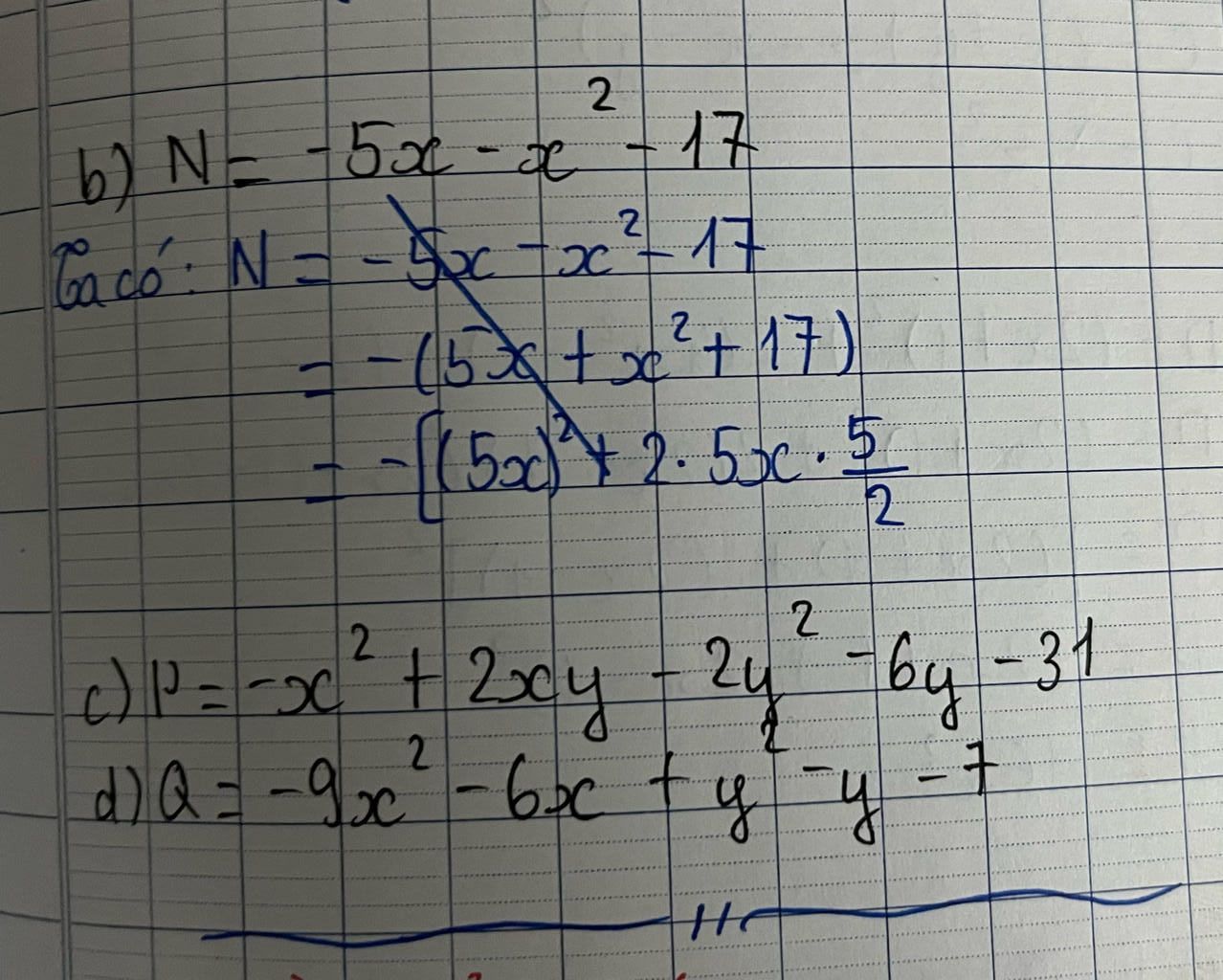 $\to N=-(x+\dfrac52)^2-\dfrac{43}4\le -0-\dfrac{43}4<0$