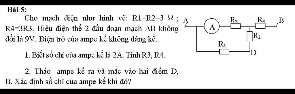 1. Biết số chỉ của ampe kế là 2A. Tính R3, R4.