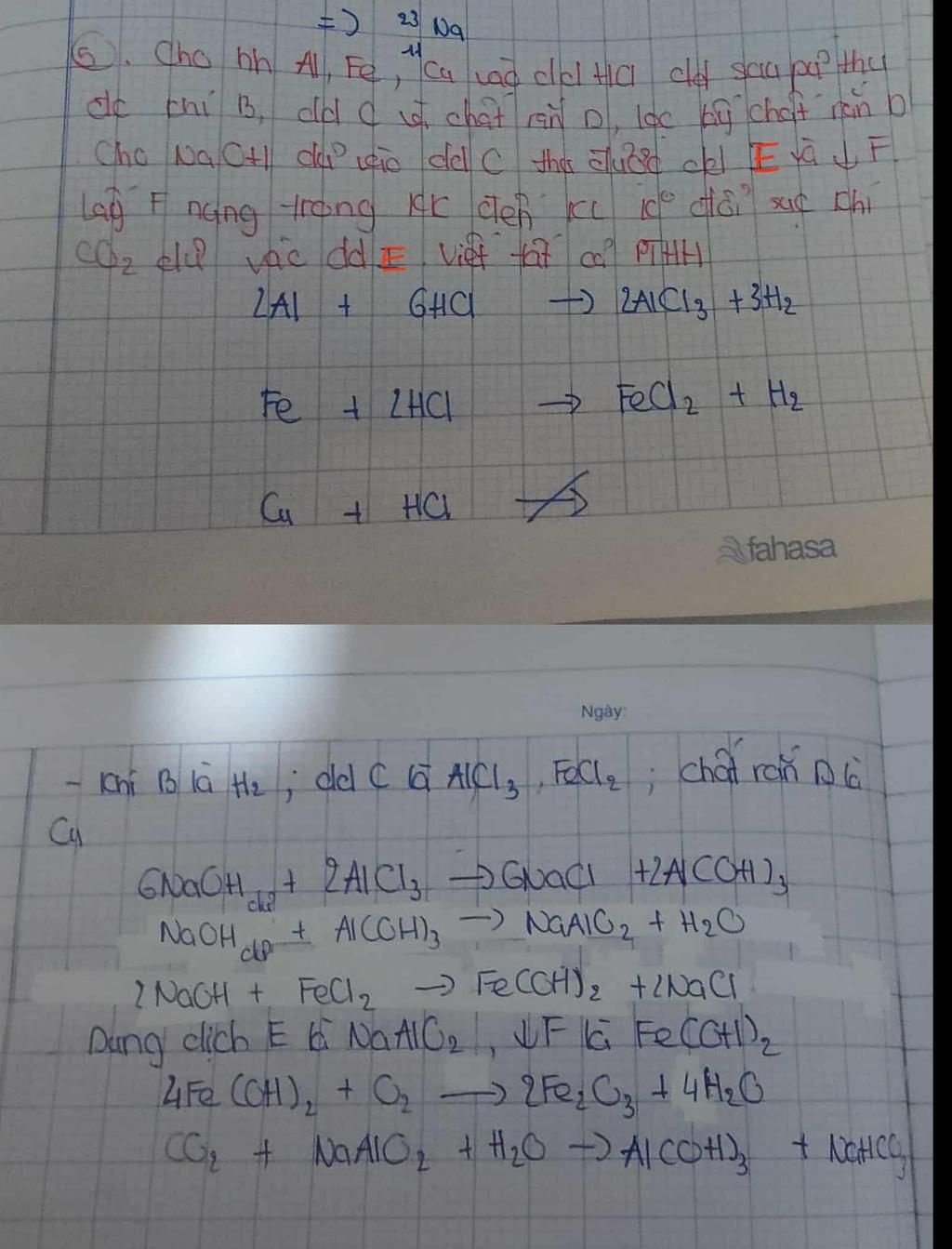 Vì đề không nói HCl dư hay không nên dung dịch C nên có thêm HCl dư. Sau đó cho dd NaOH dư vào dung dịch C thì HCl bị trung hòa hết, không ảnh hưởng đến phần sau nhé. Và bổ sung thêm dung dịch E còn thiếu NaOH dư và NaCl. Sục `CO_2` dư vào dung dịch E thì thêm 1 phương trình: `CO_2+NaOH\to NaHCO_3`