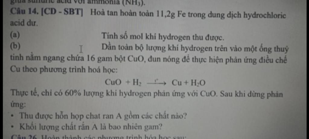 +) `n_(CuO) = (m_(CuO))/(M_(CuO)) = 16/80 = 0,2` (mol)
