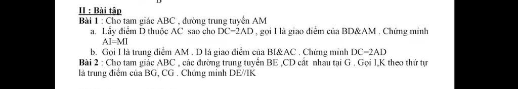 Ta có: $BE, CD$ là đường trung tuyến $\Delta ABC$