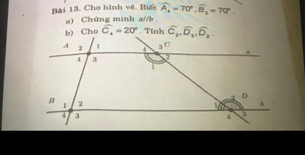 `13.` Biết `:` `\hat{A}_4=70^@` và `\hat{B}_2=70@` và `\hat{C}_4=20^@.`