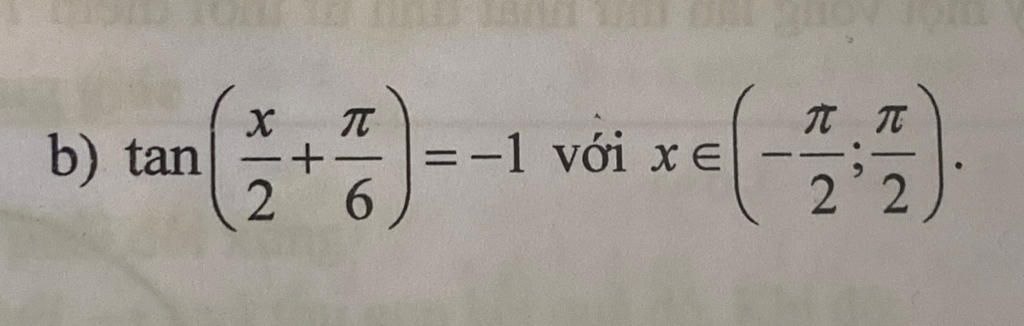 `b)tan(x/2+pi/6)=-1 AA x in (-pi/2 ; pi/2)`