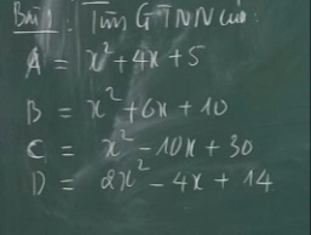 Vậy `D_(mi n) = 12` khi `x = 1`