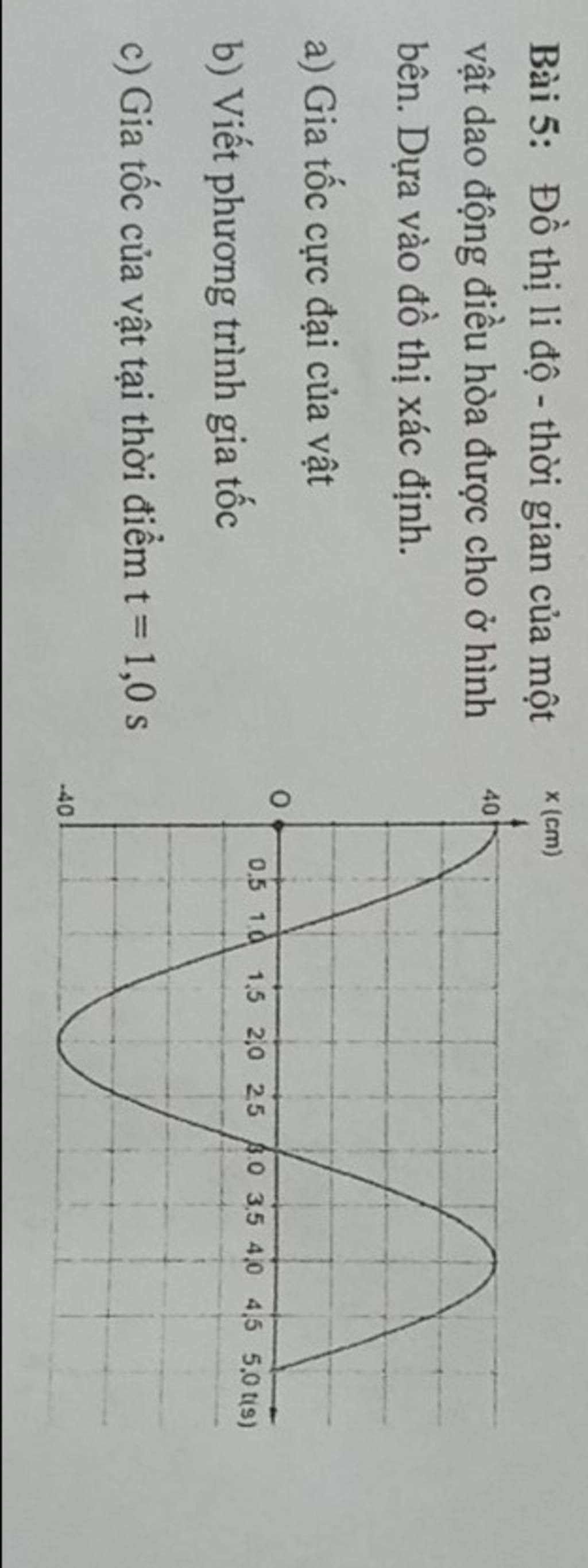 Xem lại tiếp, nếu m viết kiểu đó thì pt đúng phải là `pi/10cos(pi/2t+pi)` chứ, gia tốc ngược pha li độ