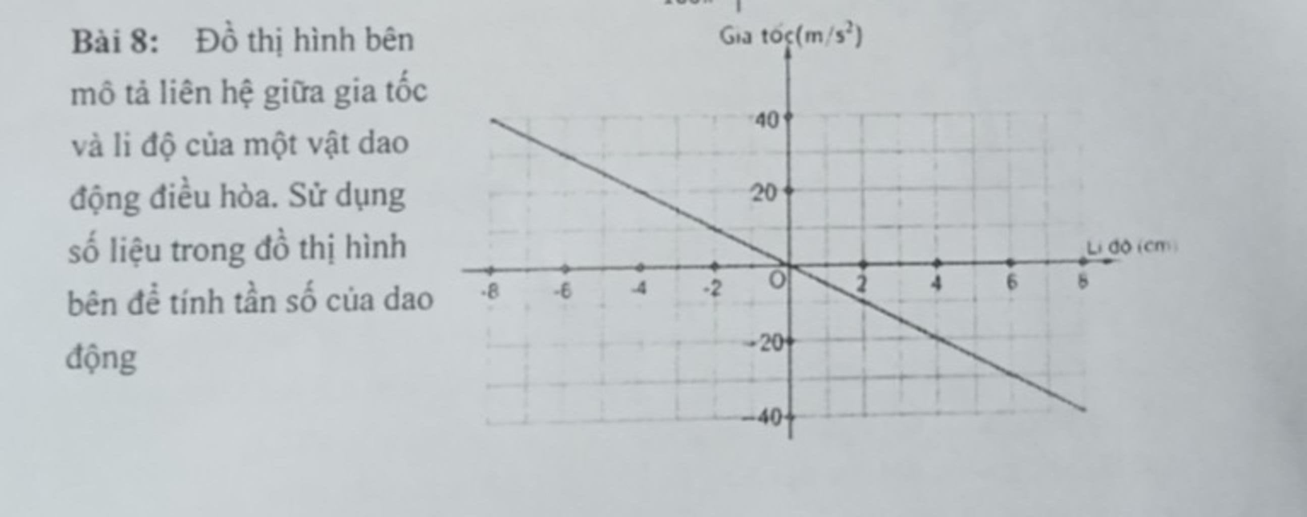 Để ý thấy khi `x=-8\ cm` thì gia tốc là `a=40\ m//s^2=4000\ cm//s^2`
