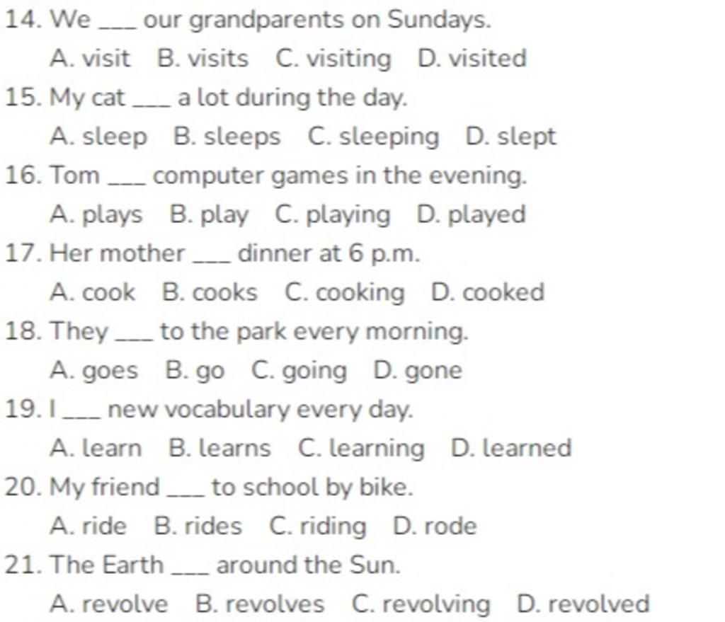 `-` The Earth chủ ngữ số ít `to` V(s/es)