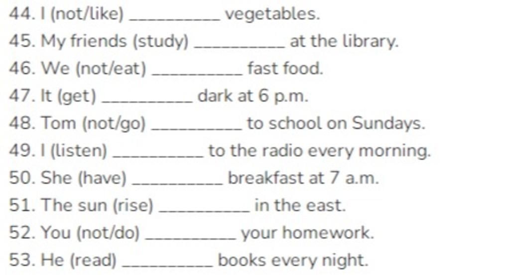 `-` Các chủ từ số nhiều `:` I`/`we`/`they`/`you`.`