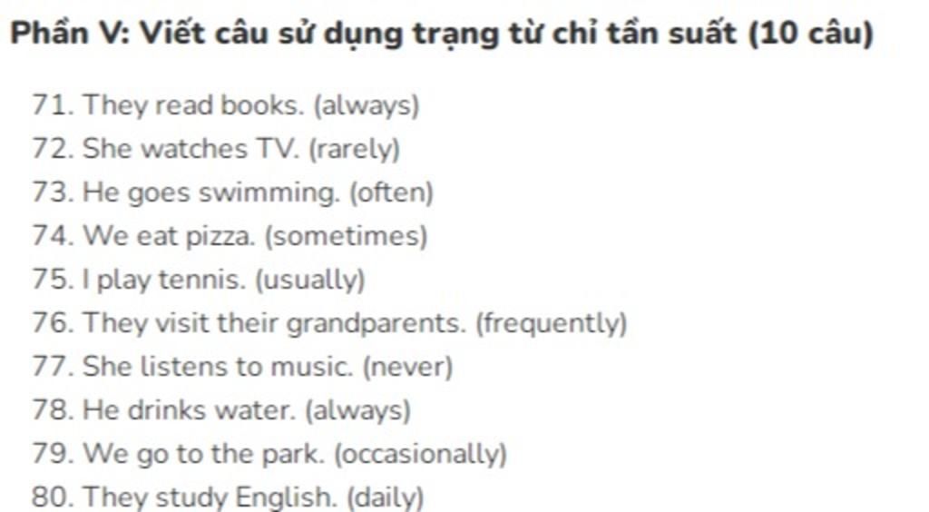 ` -> ` S + trạng từ chỉ tần suất + Verb/Verb phrase