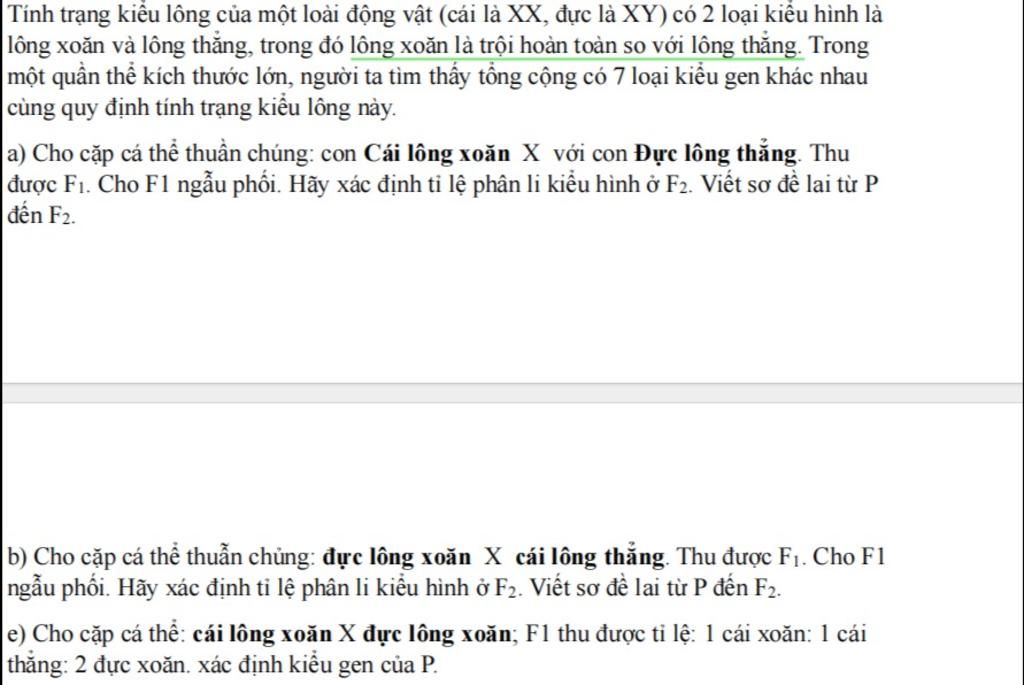 lông xoăn và lông thẳng, trong đó lông xoăn là trội hoàn toàn so với lông thẳng. Trong