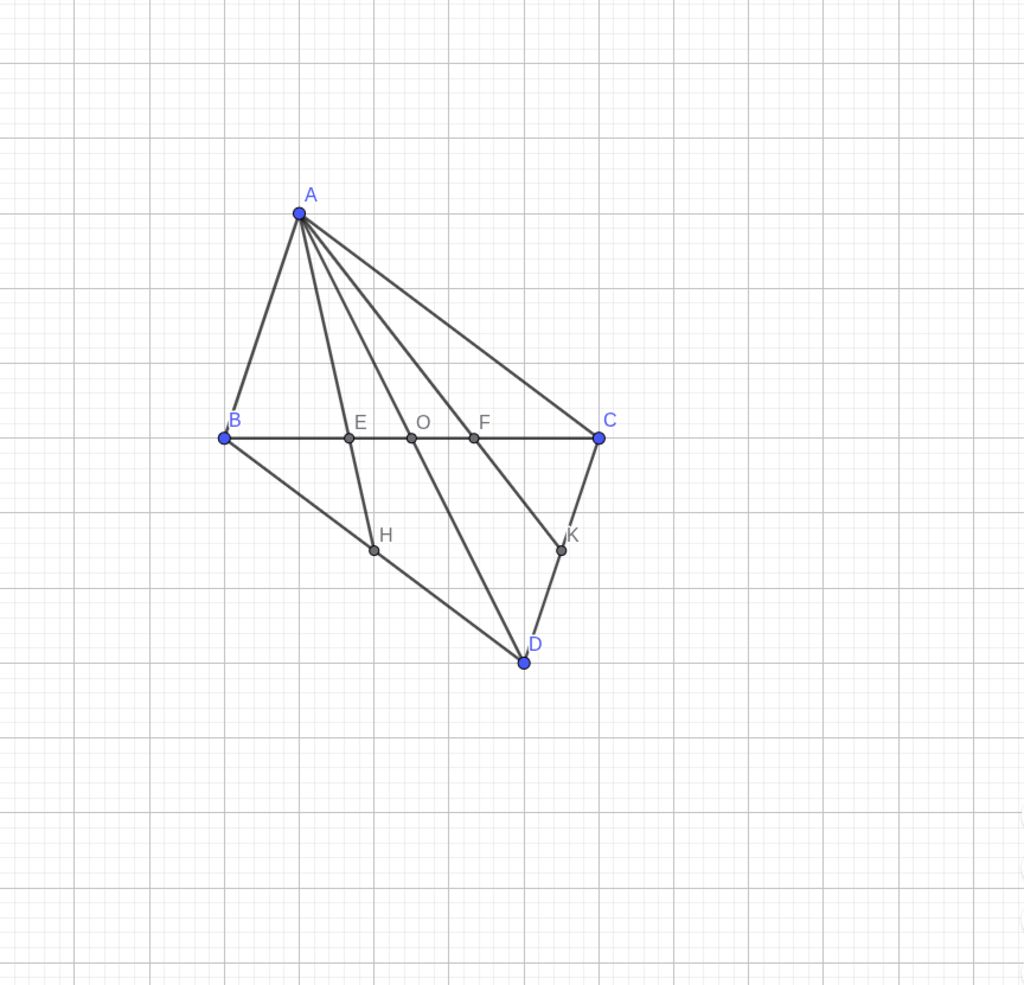 Cho tam giác ABC có đường trung tuyến AD kéo dài từ A đến O thêm 1 đoạn OD = OA. Gọi H,K lần lượt là trung điểm của BD và CD, AH và AK lần lượt cắt BC ở E,F