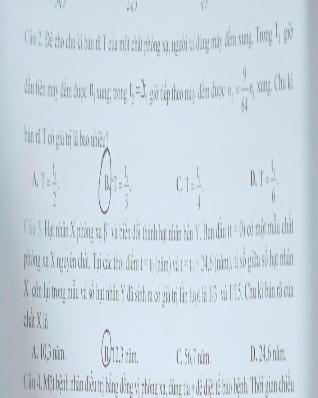 Cầu . Để cho chu kì bán rã T của một chất phóng xạ, người ta dùng máy đến xung. Trong là giờ