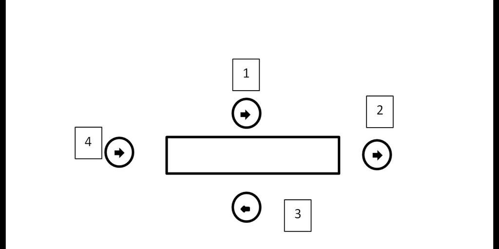 bốn kim la bàn được đặt gần một thanh nam châm thẳng như hình. Biết rằng chỉ có 1 là bàn bị lỗi thì đó là la bàn nào
