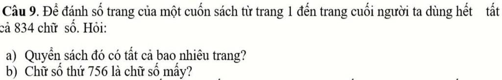b) Số trang có 3 chữ số được đánh dấu tới chữ số 756 là :