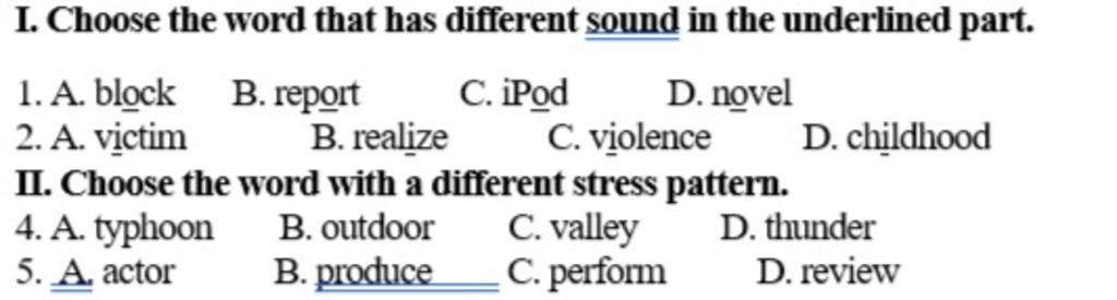 1. A. block /ɒ/ B.report /ə/ C.ipod /ɒ/ D. novel / ɒ/