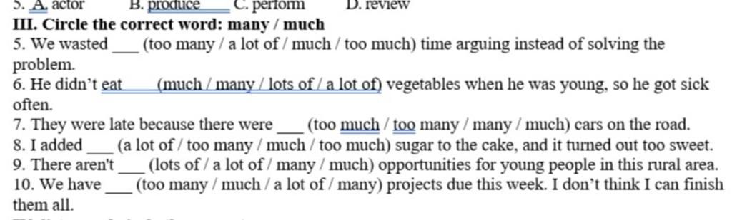 `-` too many : quá nhiều