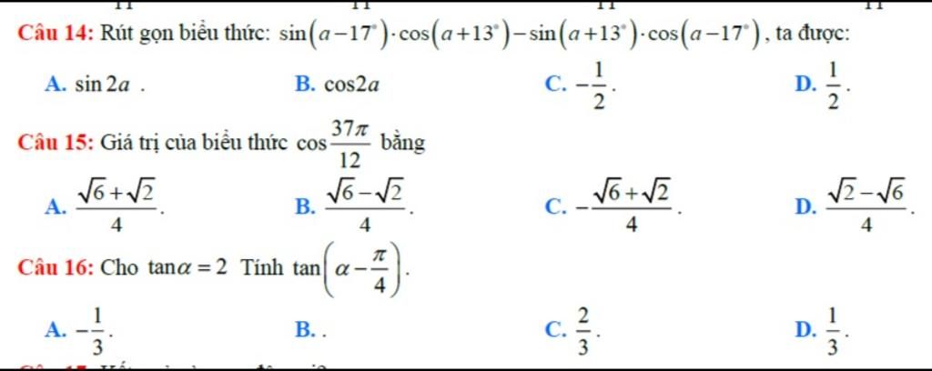 Câu `16`:Theo đề bài thì ta có: $\tan\alpha=2$