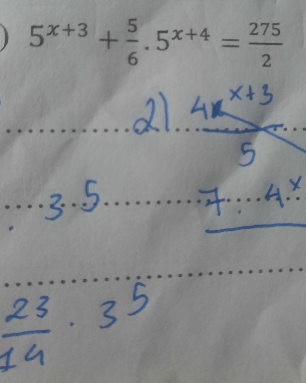 ` 5^x . 5^3+ 5/6 . 5^x . 5^4 = 275/2`